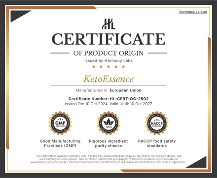 KetoEssence products are manufactured in the EU, ensuring full certification and compliance. They contain only natural, approved ingredients of the highest quality.